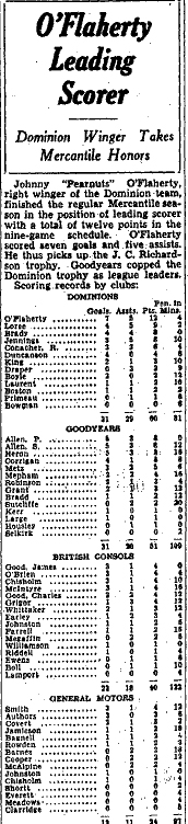 Port Colborne Sailors beat Trenton RCAF Flyers 9 goals to 3.