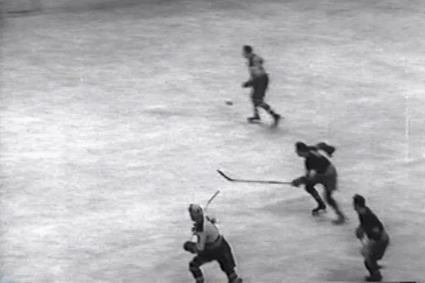 Eddie Shore and Tiny Thompson stop John Sorrell and Marty Barry, January 11, 1938.