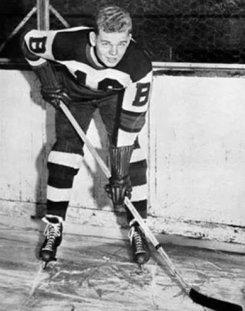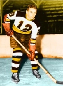 Boston's third line was broken up in March 1938 due to the injury of Leroy Goldsworthy (left).