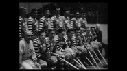 Over 14 minutes of clips (in reverse image) from the December 27, 1947 Bruins-Leafs game won 2-1 by Toronto. The first 2 minutes are in colour. Goals by Sid Smith, Vic Lynn and Pete Babando are shown.