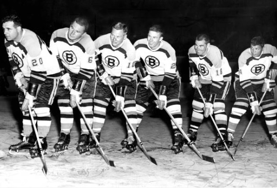 Bruins 1963-64 defense, Boivin, Green, Johnson, Awrey, Westfall and McCord.
