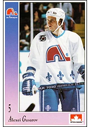 Gusarov won the Stanley Cup with the Colorado Avalanche in 1996. He is a member of the Triple Gold Club, having won the 1989 IIHF World Championship, the 1996 Stanley Cup, and the Olympic gold medal in 1988. Standing 6'2" and weighing in at 183 lb (83 kg), Gusarov was selected 213th overall by Quebec Nordiques in the 1988 NHL Entry Draft. Gusarov is considered to be one of the finest Russian defensemen to ever play.
