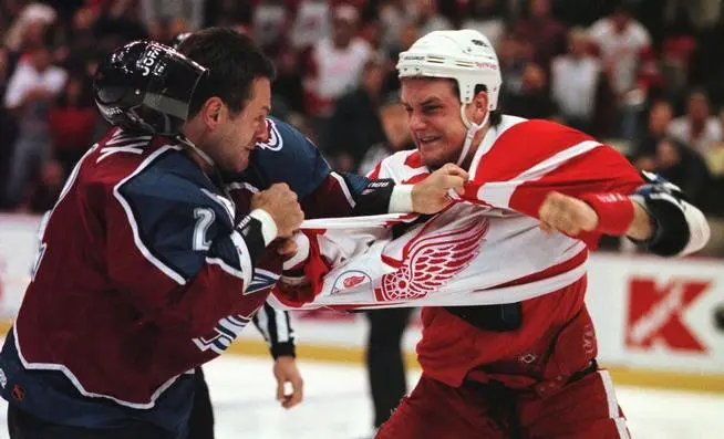 Avalanche-Red Wings fight 1996 Western Conference finals.