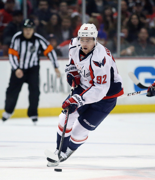 Yevgeny Yevgenyevich Kuznetsov (Russian: Евгений Евгеньевич Кузнецов; born May 19, 1992) is a Russian professional ice hockey forward currently playing for the Washington Capitals of the National Hockey League (NHL). He previously played for Traktor Chelyabinsk of the Kontinental Hockey League (KHL). He has represented Russia in junior and senior level competitions on numerous occasions, winning gold medals at the 2011 World Junior Ice Hockey Championships, as well as at the 2012 IIHF World Championship and 2014 IIHF World Championship.