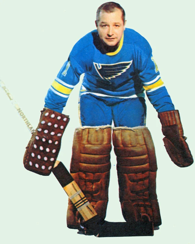| 1967–68 | St. Louis Blues | NHL | 49 | 19 | 21 | 9 | 2858 | 118 | 5 | 2.48 | .918 |