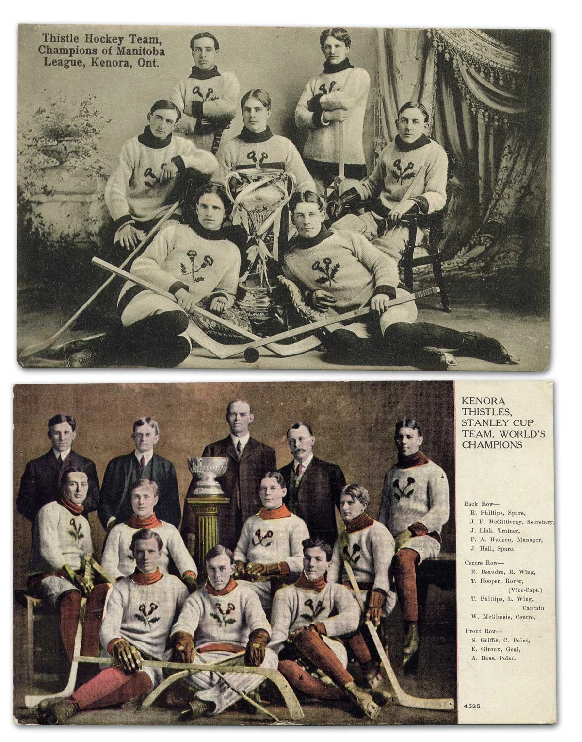 The Kenora Thistles were, at various times, a professional, senior, intermediate, and junior team. They have won a host of championships, including their most famous - the Stanley Cup in 1907. Kenora is the smallest town to have ever won the cup. The Junior Thistles were the 1939-40 Memorial Cup Final runner-ups. A number of NHL players have played for the Thistles including Art Ross, Charley McVeigh, Chuck Rayner, Bill Juzda and Mike Richards.