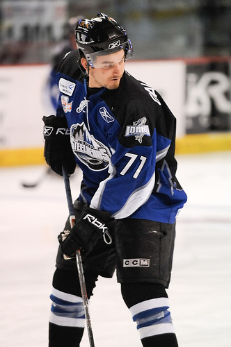 Signed by Thunder on 7/16/10…serving as alternate captain…picked up 10-minute misconduct on 10/22 at Missouri…had fighting major (Fleck) and game misconduct (no tie-down) for 15 total PIM on 10/31 at Tulsa…had goal and fighting major (Wessbecker) on 11/5 vs. Arizona…had fighting major (MacDonald) on 11/13 vs. Bloomington…had fighting major (Schrock) on 12/10 vs. Fort Wayne…had fighting major (Deleurme) on 12/18 at Bloomington…had two assists and was +3 on 12/26 vs. Missouri…had two assists on 1/1 at Rapid City…scored Gordie Howe hat trick on 1/8 vs. Bloomington with goal, two assists, and fighting major (Granbois)…scored goal and assist on 1/14 vs. Texas…had goal and two assists on 1/15 vs. Arizona…scored game-winning goal with 1:07 left in regulation and finished +3 on /17 at Quad City…had fighting major (Phillips) on /5 at Fort Wayne…had two assists on 2/11 vs. Rio Grande Valley…scored game-tying goal with 47.3 seconds left in regulation and had two assists on 2/12 vs. Bloomington…scored two goals on 3/1 vs. Colorado…placed on 10-Day IR retroactive to 3/18…activated on 3/28. Made the Wichita Thunder's 2011 playoff roster