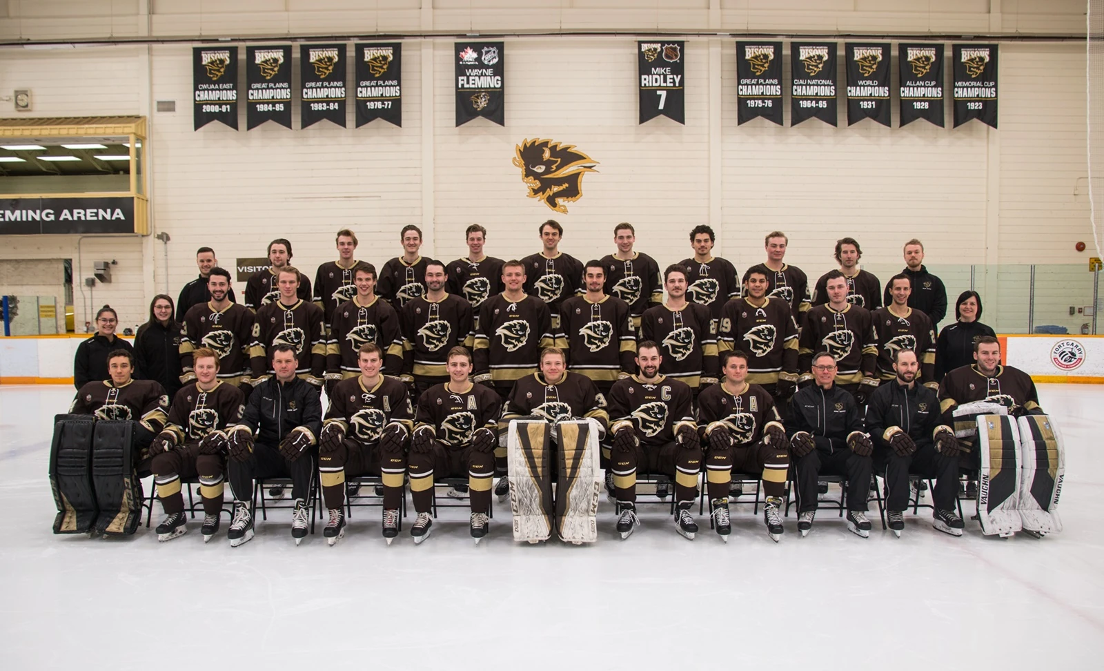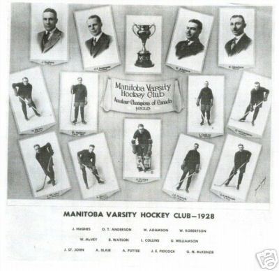 The Bisons started play in junior and senior leagues. In 1923 the Bisons defeated the Kitchener Colts 14-6 on aggregate to win the 1923 Memorial Cup. In 1928 they defeated the Montreal Victorias 2-games-to-1 to win the 1928 Allan Cup. That team, as the "U of M Grads", then won the 1931 IIHF World Championship.