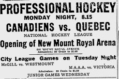 It opened for pro hockey partly unfinished on January 10, 1920 for a game between the Canadiens and Toronto, won by Montreal 14-7. A week later, parts of a balcony broke before a game with the Ottawa Senators, and police stopped sales at 6,500. The rink had been built quickly to house the Canadiens who had lost their arena, Jubilee Arena to fire in 1919.
