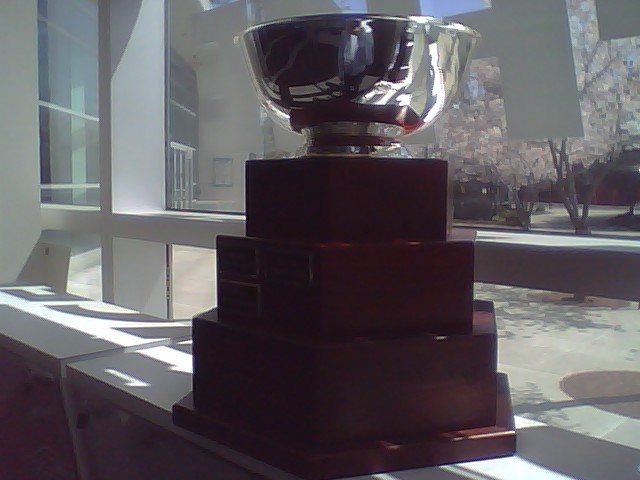 The Chiefs lower the Memorial Cup via rope, from the roof of the Spokane Arena on Opening Night 2008. Four months earlier, the Cup broke in the Chiefs hands during the celebration in Kitchener, Ontario.