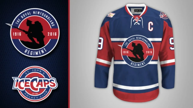 The team unveiled a special third jersey on January 15, 2016 to honour the 100th Anniversary of the Battle of the Somme at Beaumont-Hamel in which 733 men from Newfoundland and Labrador were killed or injured. The logo is crested by a commemorative logo for the 100th anniversary and the words "The Royal Newfoundland Regiment" with the dates "1916" and "2016".