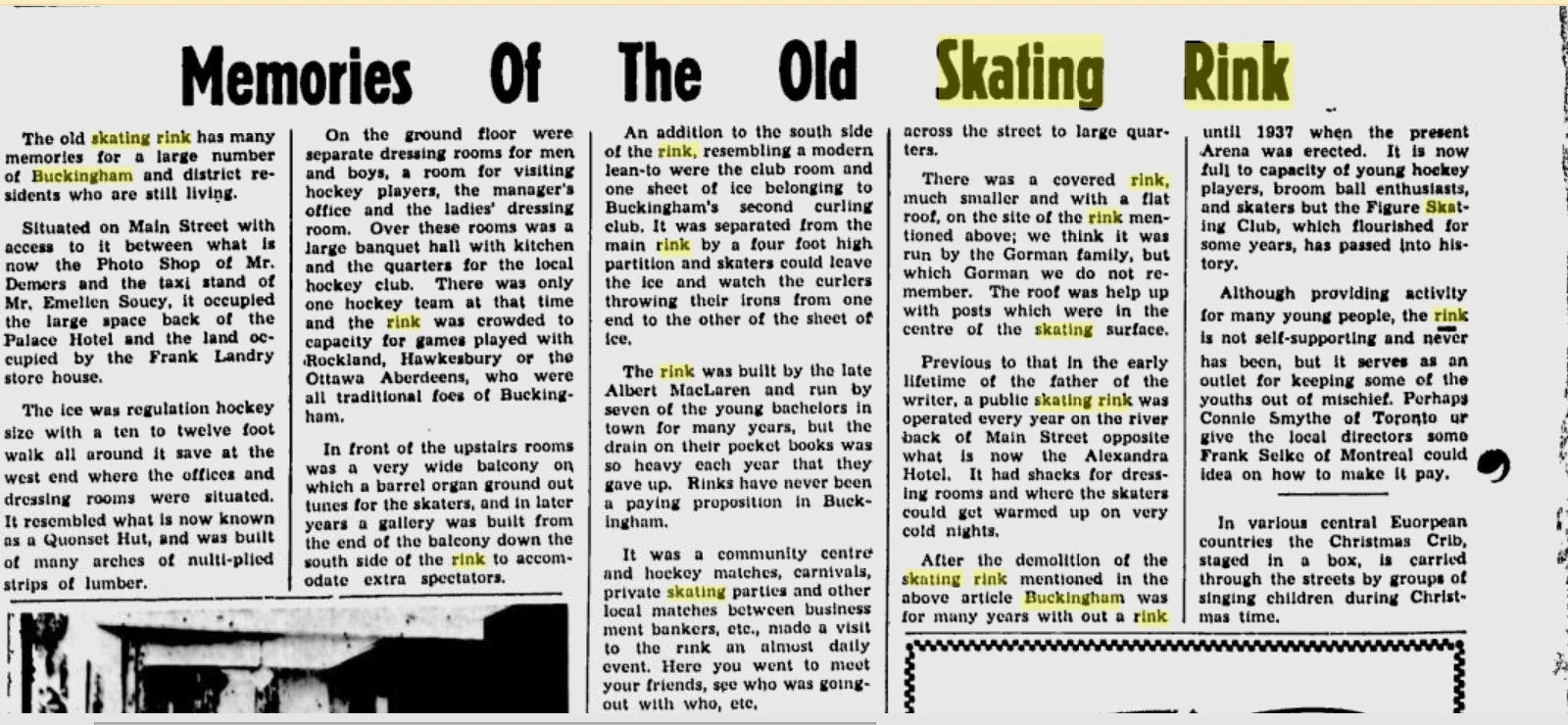 The Buckingham, Quebec Whaleback Skating Rink built in 1894 lasting to 1918 was home to the Buckingham Hockey Team of the Lower Ottawa Valley League from 1901-1917.